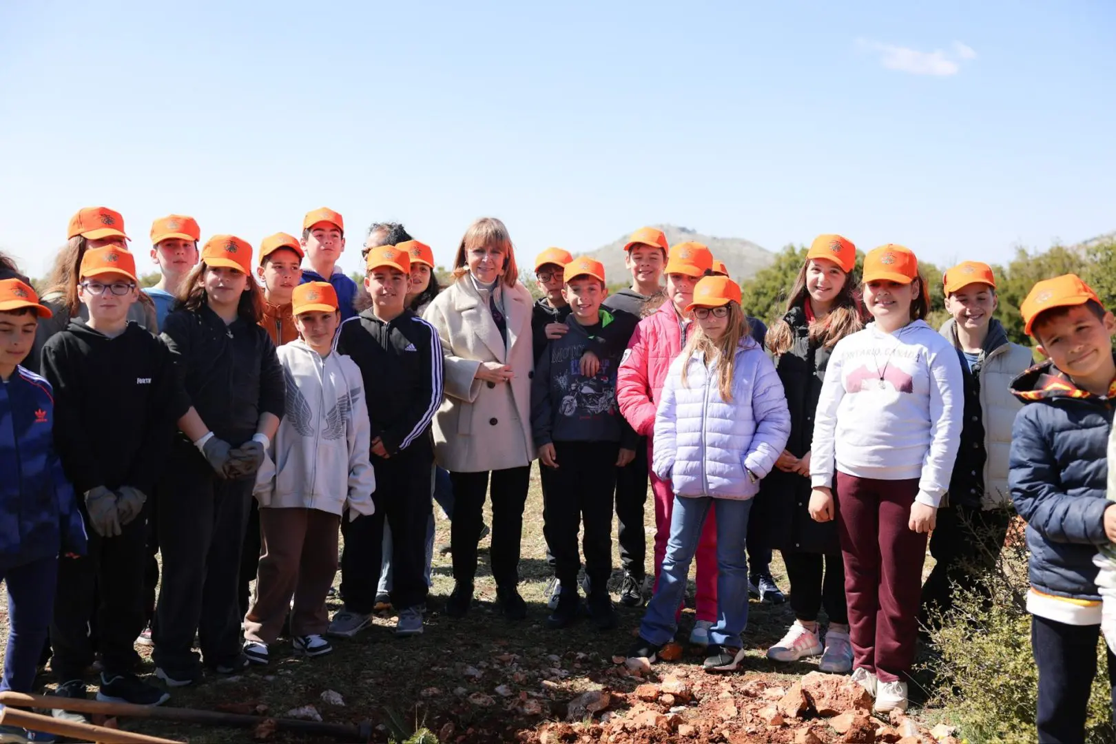 Σε συμβολική δενδροφύτευση στην Πάρνηθα με μαθητές του 3ου Δημοτικού Σχολείου Αγίας Παρασκευής και με τις γυναίκες πρέσβεις διαπιστευμένες στην Ελλάδα, με αφορμή τη Διεθνή Ημέρα Δασών, 21 Μαρτίου 2024