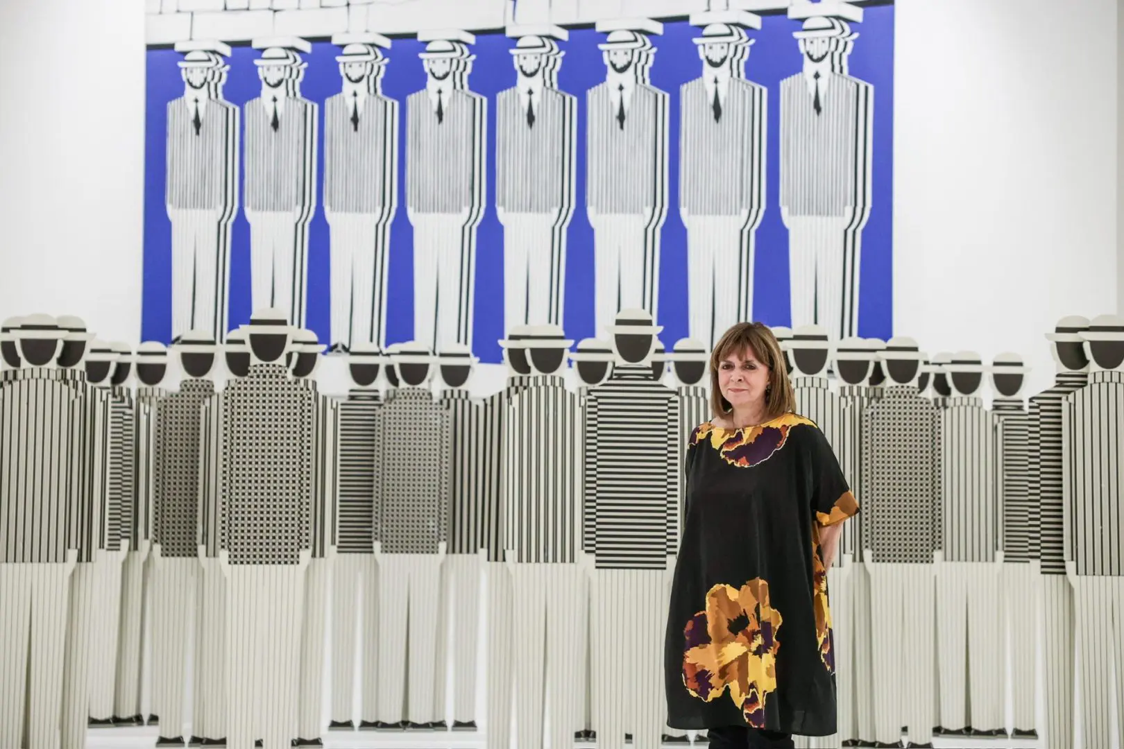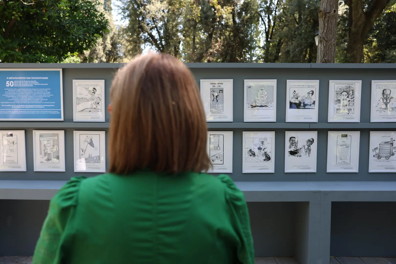 Στην παρουσίαση έργων γνωστών γελοιογράφων που φιλοξενήθηκε στον κήπο του Προεδρικού Μεγάρου με αφορμή την επέτειο 50 χρόνων από την αποκατάσταση της Δημοκρατίας