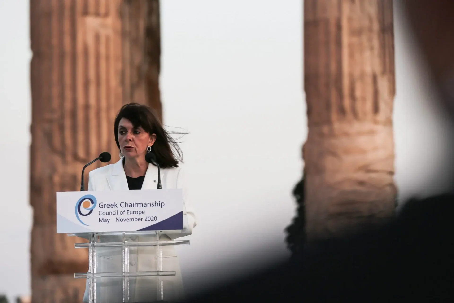 Στην εκδήλωση της Ελληνικής Προεδρίας του Συμβουλίου της Ευρώπης στον αρχαιολογικό χώρο του Ναού του Ολυμπίου Διός, 8 Ιουλίου 2020